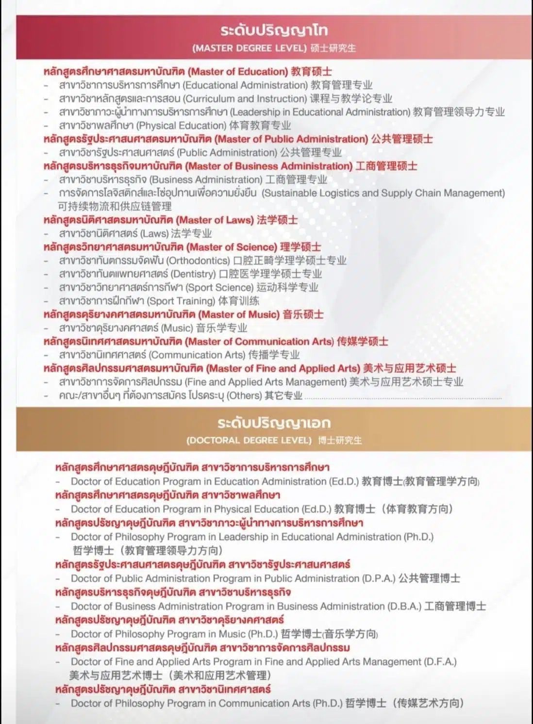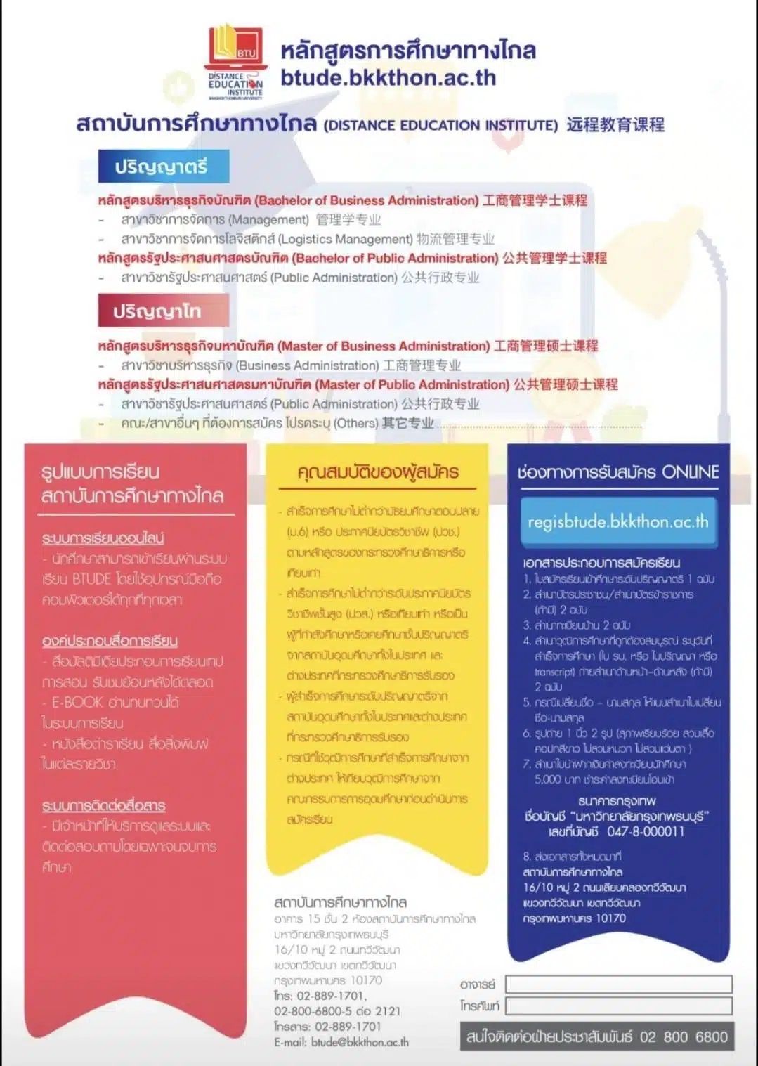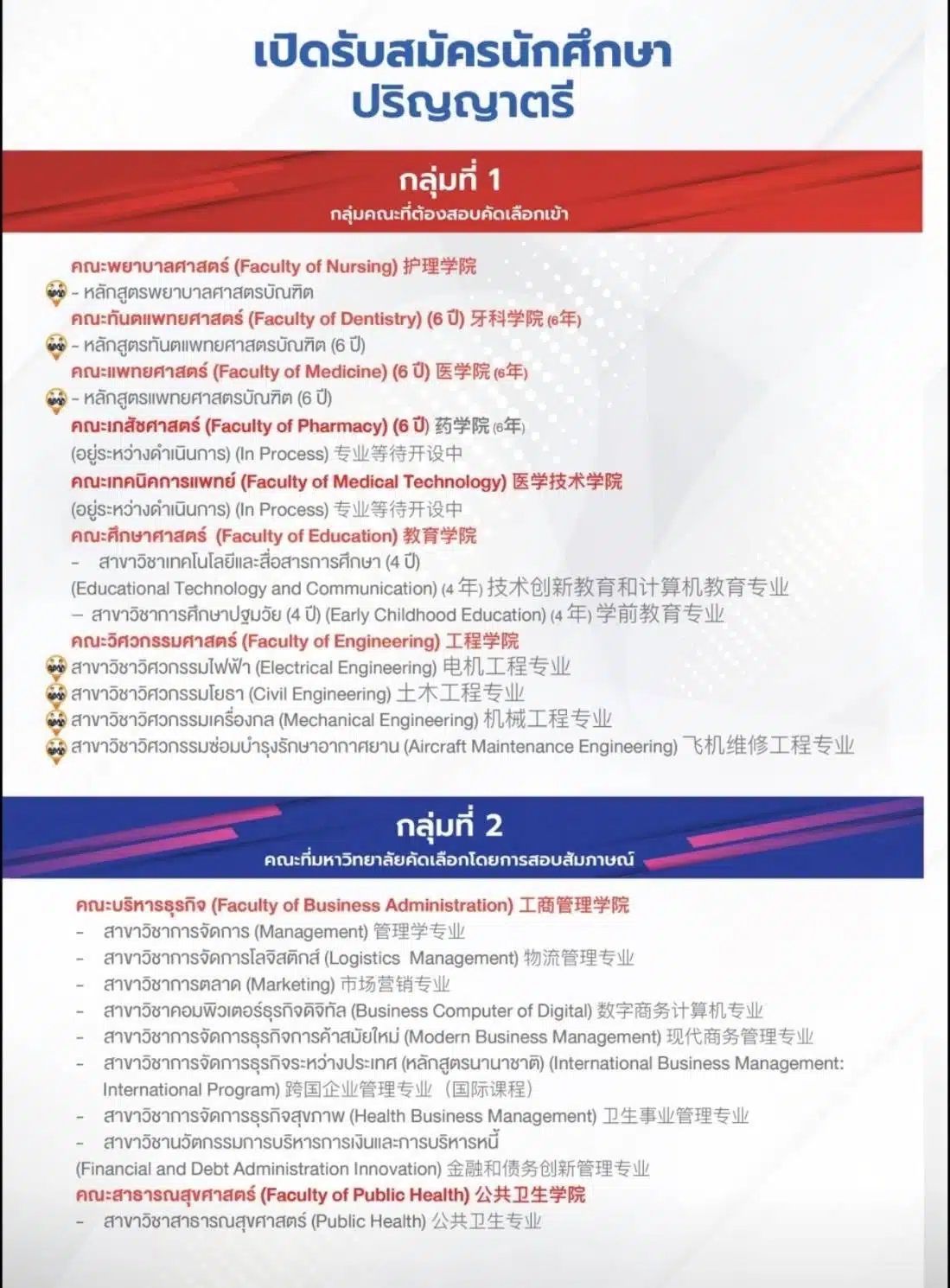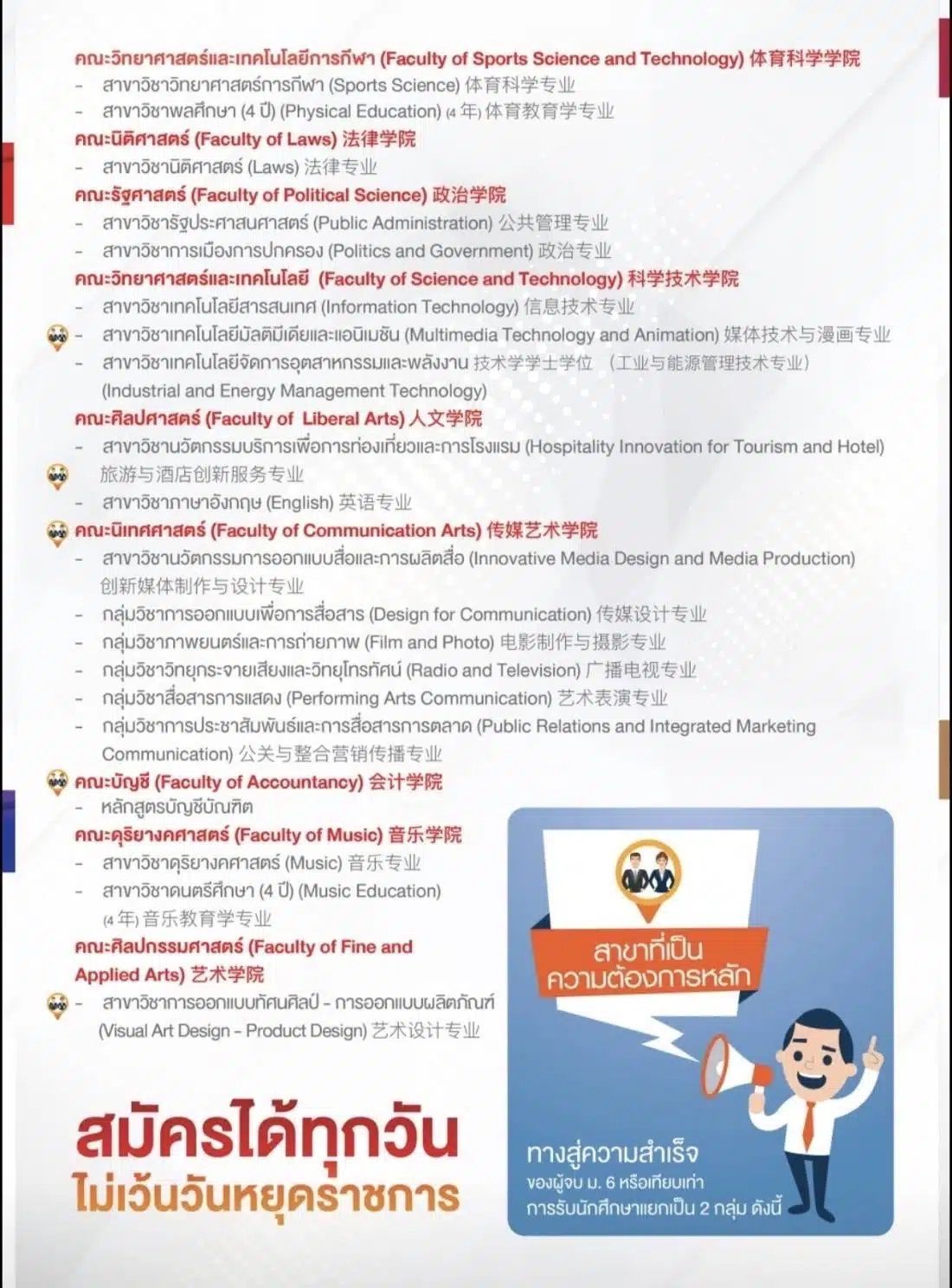 ผู้สนใจสมัครเรียนสามารถดูภาพรวมหลักสูตรและคณะจากภาพด้านล่างนี้